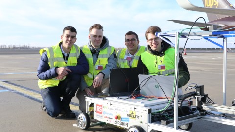 Sie haben ihn .screw Rover" genannt. Und er steuert jetzt auf dem Vorfeld des Airports in Schwechat direkt auf eine in den Boden versenkte Lichtanlage zu. um herauszufinden, ob deren Schrauben locker sind. Wegen der ständigen Vibrationen der Flugzeuge müssendie rund 20.000 Landefeuer auf dem größten Flughafen Österreichs jährlich kontrolliert werden; bei Bedarf werden die Schrauben nachgezogen.